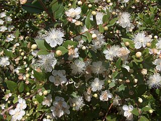 Myrtle in flower. Photo Giancarlodessi. Our tree this week is the myrtle, sacred to Aphrodite. Myrtle trees were planted in Aphrodite’s temple gardens and shrines, and she is often depicted with a myrtle crown, sprig or wreath. Most people are familiar with Aphrodite as the Greek goddess of love, beauty and sex. Aphrodite is guardian of the gates of birth and death, symbolized by the vagina. As poets well know, myrtle rhymes with girdle, and Aphrodite has a very famous and coveted girdle that she sometimes lends to other goddesses. This is not the modern girdle that restricts breathing; this is a belt tied around the waist that makes the wearer sexually irresistible.Aphrodite’s myrtle is the Common Myrtle, a small, leafy evergreen native to Asia minor and southern Europe that grows well in dry, slightly alkaline soil. It is not closely related to the Crêpe Myrtle, a tree native to India that was planted in the Carolinas and escaped into the wild, nor is it related to the Honey Myrtle or Lemon Myrtle, both of Australia, which are becoming increasingly important in herbal medicine.With any tree sacred to a goddess it is important to examine whether it has a special relationship to the bee. Bees were highly regarded by ancient peoples, not only because they provide honey and pollination, but because like humans they live in highly organized communities. Goddesses of love and beauty are likely to be linked with bees, and Aphrodite is no exception. Aphrodite’s myrtle nymphs raised the God Aesacus, god of beekeeping and other cottage industries like olive curing and cheesemaking. Bees flock to the myrtle tree, and as a late blooming tree it is important in honey production. Pollen collected in the spring is used for the hive’s immediate needs, while pollen collected late in the year becomes surplus honey for the dormant period. A portion of this honey is harvested by the beekeeper. Myrtle honey, once important for food and medicinal uses, is an uncommon commercial honey today.Gold funerary wreath. Greece, 4th century BCE.You would expect the flowers of the myrtle to be odoriferous, considering its attractiveness to bees, but the leaves and the bark are also highly fragrant. The tree was used in ancient times to make perfume. The leaves and the ripe berries have a strong taste, reportedly similar to allspice, and they were used as a seasoning. This is significant because Aphrodite – like that other love god, Krishna – disapproves of garlic, and other seasonings must be substituted to flavor dishes at her festivals.The myrtle’s association with Aphrodite made sprigs an important component in bridal bouquets in Victorian times. In some Ukrainian weddings, myrtle wreaths are held above the heads of the bride and groom. In Greece myrtle boughs were used in funerary ceremonies, and the myrtle wreath had a place in the Eleusinian rites, which were an exploration of the mysteries of death and rebirth.Varieties of myrtle are usually planted as ornamental trees and shrubs, prized for their attractiveness and fragrance. The Common Myrtle is seldom used medicinally today, but classical texts indicate that it was once a standard treatment for a number of conditions. Myrtle is no longer a popular girls’ name, but it was well favored in the 1800’s, probably by mothers with a romantic nature. Apparently parents abandoned the name because the Myrtle girls were subjected to too much rhyming. (Fertile Myrtle has a turtle; jumps the hurdle in her girdle.)Though the myrtle is not the popular tree it once was, any well-stocked occult store will carry the essential oil or the leaf. Be sure not to confuse true myrtle (Myrtus communis) with oil of Honey Myrtle or Lemon Myrtle, which are different trees.Aphrodite riding goose, with son Eros holding myrtle wreaths. Date unknown. (Click on thumbnail for larger picture.) SourcesGraves, Robert. The Greek Myths. London: Penquin Books, 1960.Plants for a Future. Myrtus communis – L.Powell, Cornelia. Queen Victoria’s Wedding Bouquet and the Legend of the Royal Myrtles.Theoi. Flora 2: Plants of Greek Myth.Weddings at Soyuzivka. Ukrainian Wedding Traditions.