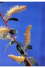 White willow. Photo by Willow.Throughout most of human history, the primary method of travel was via water rather than road. Even in the Ice Age, settlement patterns and artifacts reflect reliance on river trade, sometimes over long distances. Considering the primacy of early water travel, it is not surprising that the route to the afterlife is via river in many cultures.Water is also linked with birth as well as death, since the fetus grows in a sack of liquid which opens at birth. The moist birth canal can be compared to a small waterway. Water nourishes all animal and plant life. Water is the most basic and important substance of healing.Water has a special relationship with the moon. The full moon’s influence on the tides is the most obvious, but the moon has a subtle effect on other waterways, including the waters of the womb. While scientists scoff, midwives and others involved in obstetric care firmly believe the full moon is capable of inducing labor. “As the moon empties, so does the womb.” The moon’s reflection on slow-moving rivers and pools of fresh water magically charges the water with the moon’s life-giving energies.In the northern hemisphere the most ubiquitous tree along rivers is the willow. This tree produces a strong yet pliable bark that is useful for basket weaving. The birch twigs of the witch’s broom are traditionally latched to the ash handle with strips of willow bark. Dowsers generally use willow (or hazel) twigs for divining underground water sources. The willow is certainly in the top five preferred trees for magic wands, partly because it grows along riverbanks and is thus nurtured with water charged by the moon.Willow catkinThe willow is one of the first trees to reawaken in early spring, and the fibrous blossoms (called catkins) have in bygone eras provided nourishment during this hungry time. Bees also feast on catkins as they emerge from their hives. The most important contribution of willow to humankind, however, is as a medicine. The bark of the willow tree contains an important pain relieving anti-inflammatory substance from which aspirin was originally derived. While aspirin, both synthetic and derivative, is a relatively new arrival, the use of willow bark is documented in early medical texts.The white willow tree (Salix alba), which produces the preferred bark for pain relief, is native to Europe and western Asia. It is called a “white” willow because the underside of the leaf is covered with silky white down that gives the tree a silvery appearance. This is the tree sacred to the goddess Hecate. She is a goddess associated in classical times with death and travel, and her followers at that time were primarily healers and primarily women. It was once common for Hecate shrines and offerings to be located along roads or at crossroads. As goddess of death she became linked with the dog, while as goddess of the road she became linked with the horse, but Hecate’s worship predates the domestication of both the dog and the horse. I believe she was originally worshiped as Queen of the Waterways in the form of the willow tree. This is how she received her association with healing and with the moon. Her association with death relates to the dark waters flowing quietly back to the source.Hecate is sometimes called a “crone goddess,” but despite her death aspect she appears as a youthful woman, reminiscent of the pliant willow which alleviates the effects of time on the body. She has dark hair, large black eyes, and luminous white skin. Like her tree she has a large, beautiful and unassuming grace.
